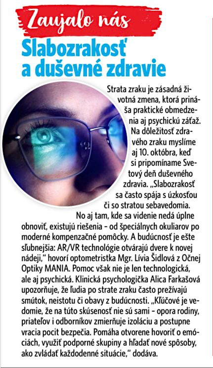 Nový čas pre ženy - Slabozrakosť a duševné zdravie